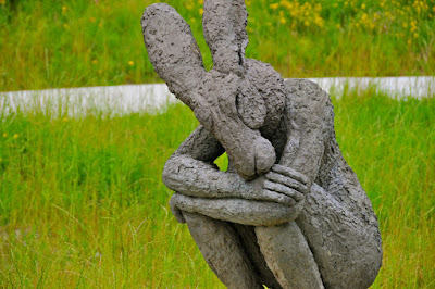 | We drove off the boat and onto Route 96 for the short leg remaining to my cousin Mark's in Grand Rapids. He and his two quivering beagles graciously hosted us for a night at their home. That evening we were introduced to the culinary curiosity which is Michigan Mexican. Well. The next morning he took us out into the city, enriching the sights with the learned narration of an architect. Mark's an enthusiastic champion of Grand Rapids and its neighborhoods glowed in the light of his exuberant promotions. Our destination was Meijer Gardens, a sprawling 158-acre art museum, botanical conservatory, and the gem, its sculpture gardens. It had been a while since we'd both suffered the beautiful exhaustion of art-overload, but that's exactly what a person is faced with, strolling the center's innumerable outdoor galleries and promenades. It was a delight to move among the diversities of era, medium, and aesthetic. |